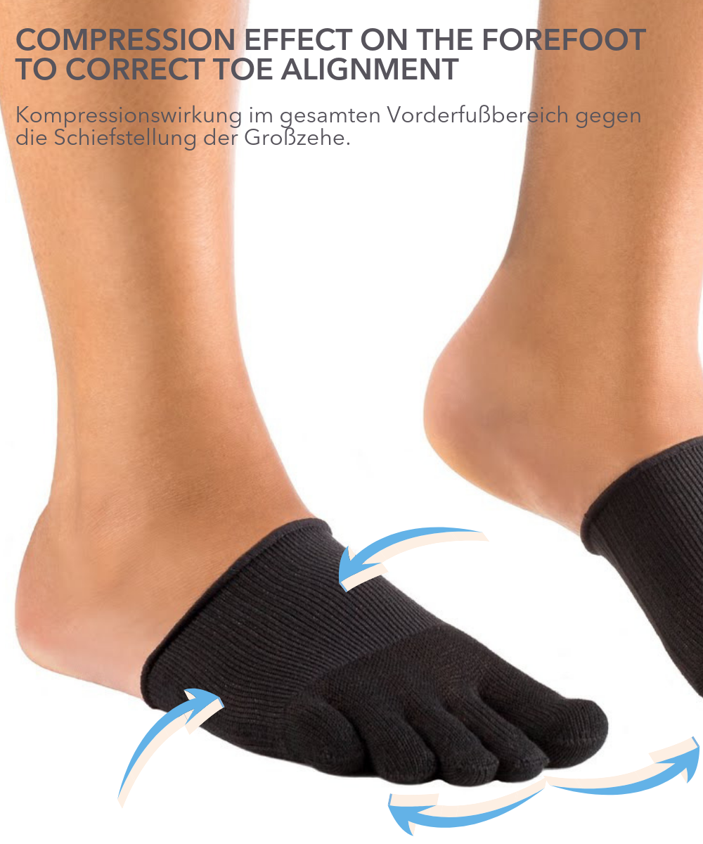 Knitido Dr. Foot hallux valgus toe socks are half socks with a strong compression effect on the midfoot to support the foot in case of Bunion.