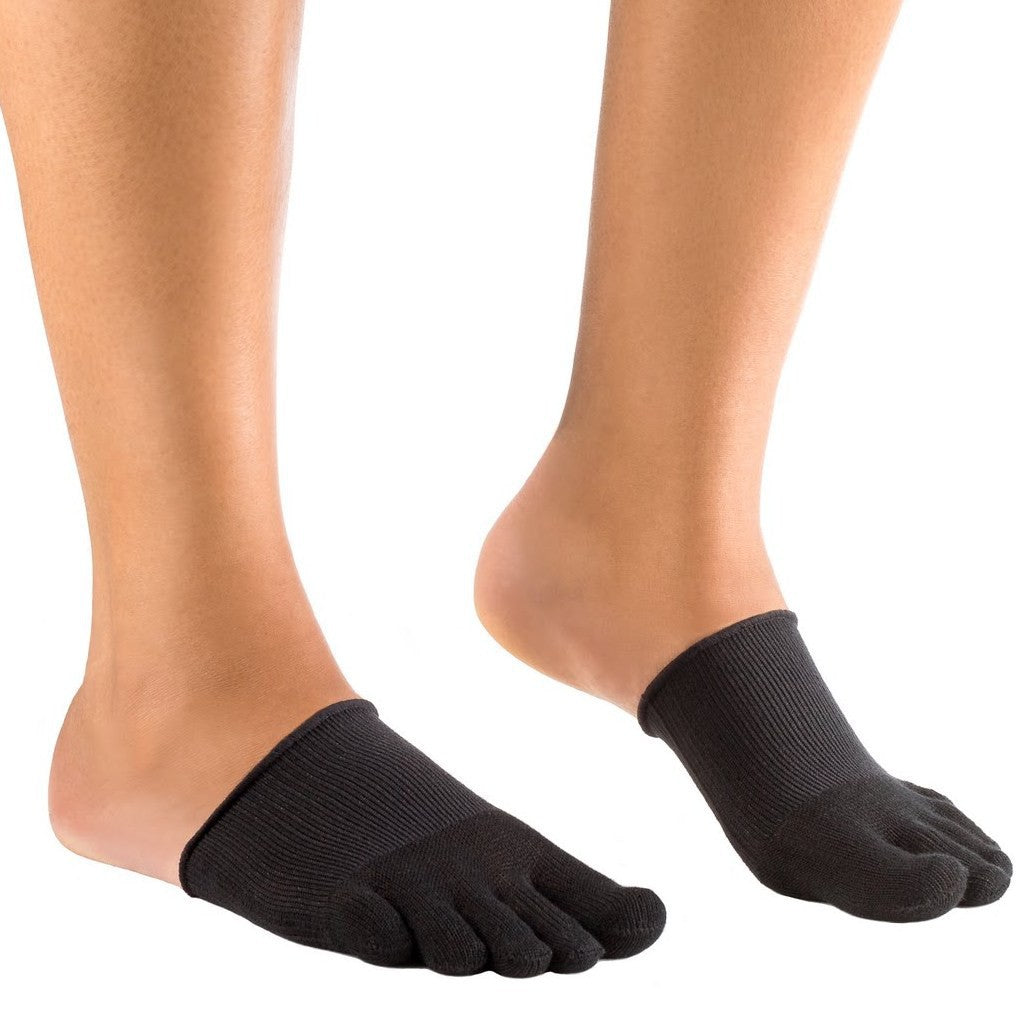 Dr. Foot Bunion Toe Socks are toe socks with a compression band incorporated at the height of the arch of the foot. This exerts gentle pressure on the midfoot area and relieves the toes. The individually enclosed toes prevent lateral pressure on the toe area.